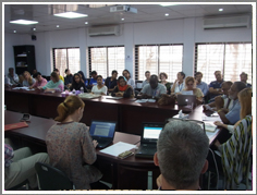 ![]() | 多くの参加者で席が足りず。 Health Sector Meetingの様子 |