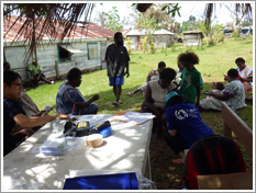 その他、診療の合間には公衆衛生の専門家で以前JICAでバヌアツ赴任経験もあるHuMA医師により、現地Aid Postの視察やVillage Health Workerへの専用フォームを使った聞き取り調査が行われた。またバヌアツで作成されたポスターやバヌアツの健康教育教材であるInformation Education Communication (IEC) packageを待合中に配布し読んでもらうなどの公衆衛生・予防教育的な活動も行った。
