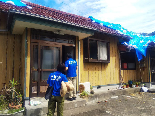 道中、ビニールシートで覆われた家や屋根さえない家を見ました。被災ゴミも増えてきており、タンス、布団、食料、本など、つい1週間程前までは当たり前のように日常生活で使われていた物たちが今はゴミの一塊となっています。最後に富崎公民館を訪問。物、人、ライフライン、情報は日々充足しつつあり、地域の方や復興に携わる方々の努力を肌で感じた1日でした。